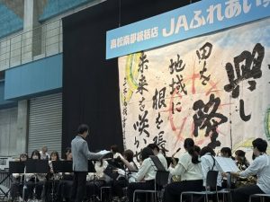 今年もJA様よりご依頼いただき、11/29にサンメッセで開催されました、JAふれあいまつりで演奏をさせていただきました。 大勢のお客様を前に演奏させていただきまして団員一同感謝しています🙇‍♀️ また、今年もおいしいうどんをご馳走になりました。 演奏後のほっとする1杯でした☺️また来年?! 11/29夜の練習ではサックスの見学者が来ました🎷 まだまだ団員募集中です!